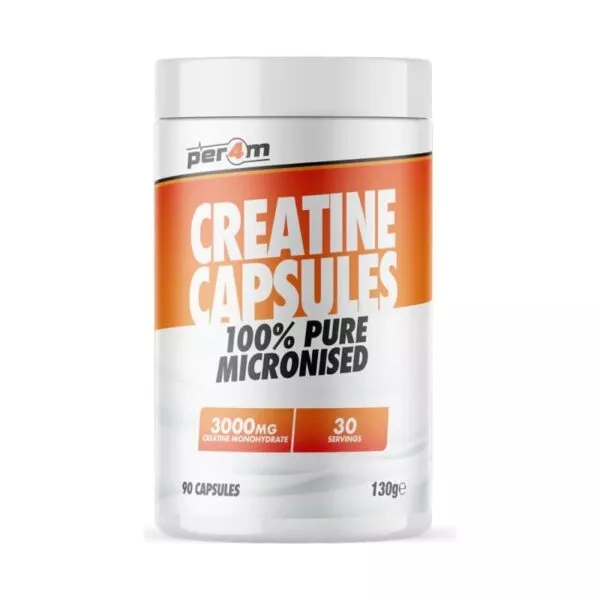 Το Per4m Creatine σε κάψουλες υποστηρίζει δύναμη, ενέργεια και απόδοση με 3000 mg κρεατίνης καθημερινά για αποτελεσματικές προπονήσεις.