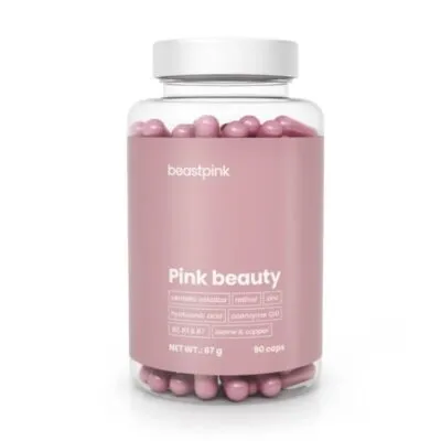 Το Pink Beauty της BeastPink είναι ένα ολοκληρωμένο συμπλήρωμα διατροφής σχεδιασμένο για τη σύγχρονη γυναίκα που θέλει να φροντίζει την επιδερμίδα, τα μαλλιά και τη συνολική της εικόνα από μέσα προς τα έξω. Η σύνθεσή του συνδυάζει υαλουρονικό οξύ, βιταμίνες, μέταλλα και φυτικά εκχυλίσματα, δημιουργώντας μια καθημερινή ρουτίνα ομορφιάς σε μορφή κάψουλας. Συμβάλλει στη φυσική λάμψη, την ενυδάτωση και τη διατήρηση μιας υγιούς όψης, ενώ ταυτόχρονα υποστηρίζει τη συνολική ευεξία και ενέργεια του οργανισμού.